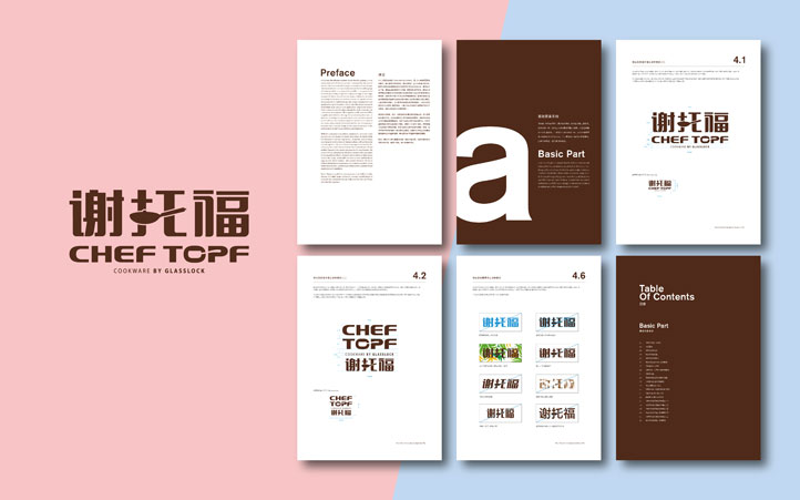 3、LOGO的核心識別是融入自己品牌設計中的廚具,這樣的一個核心識別是表示著強烈的產品屬性,讓消費者在認知品牌時能理解品牌所經(jīng)營的產品;也體現(xiàn)了謝托福品牌骨子里的一種專注,用專注去打造精致的產品,用精致的產品釀造幸福的生活。